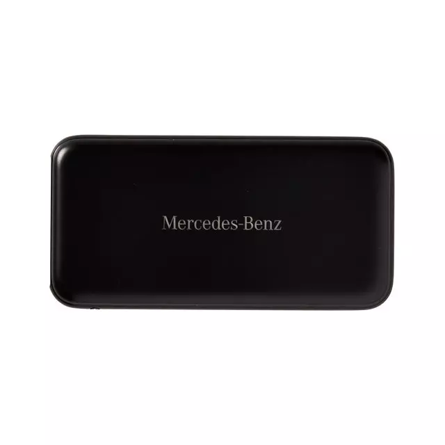 A power bank with "heartbeat" and "breathing" feature. With each beat, it brings life to your smartphone or device. It also highlights your corporate logo when breathing. 10000 mAh heartbeat/breathing power bank Laser-engraved Mercedes-Benz Text in center Available Color: Black